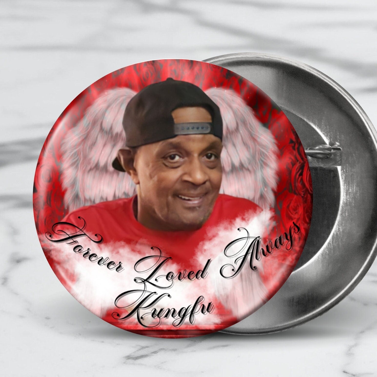 In loving Memory of Rest In Peace 3 inch Pin back Buttons, Memorial pinback buttons